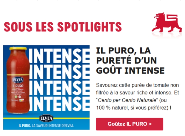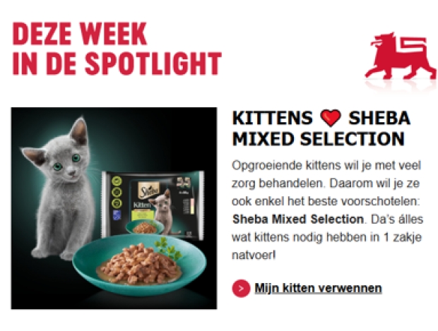 A branded banner inserted in the My Delhaize weekly newsletter. Choose the content and highlight an existing promotion or an innovation with a link to a landing page on the e-shop. The preferred segment and target quantity can be fully chosen by you, with predefined segmented groups based on the categories.