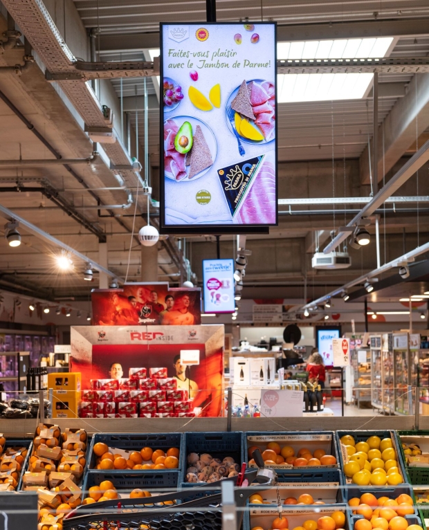 Your creation shown on screens throughout Delhaize stores with national coverage.