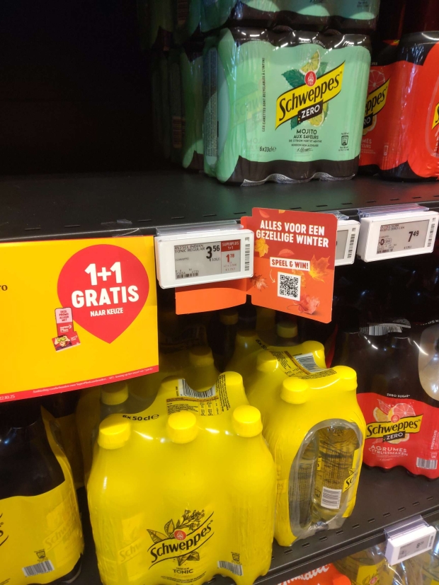 A price tag is an ideal way to highlight a new product, a new flavor or new packaging. With its placement around the price tag of the product, it will attract the shopper's attention to that specific product.
