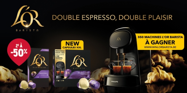 JDE launches a addictive game supported by a 360-degree communication campaign at Delhaize. The stakes: 350 l'Or Barista machines to win. To boost its sales they also combine this with a promotion '2nd product at -50% off'